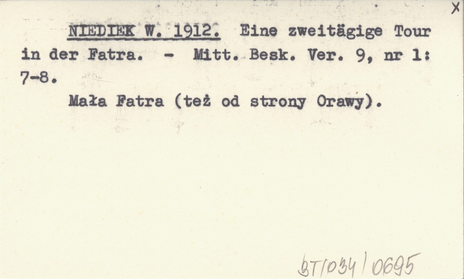 Mitt. Besk. Ver., 9, nr 1: 7-8. Mała Fatra (też od strony Orawy).