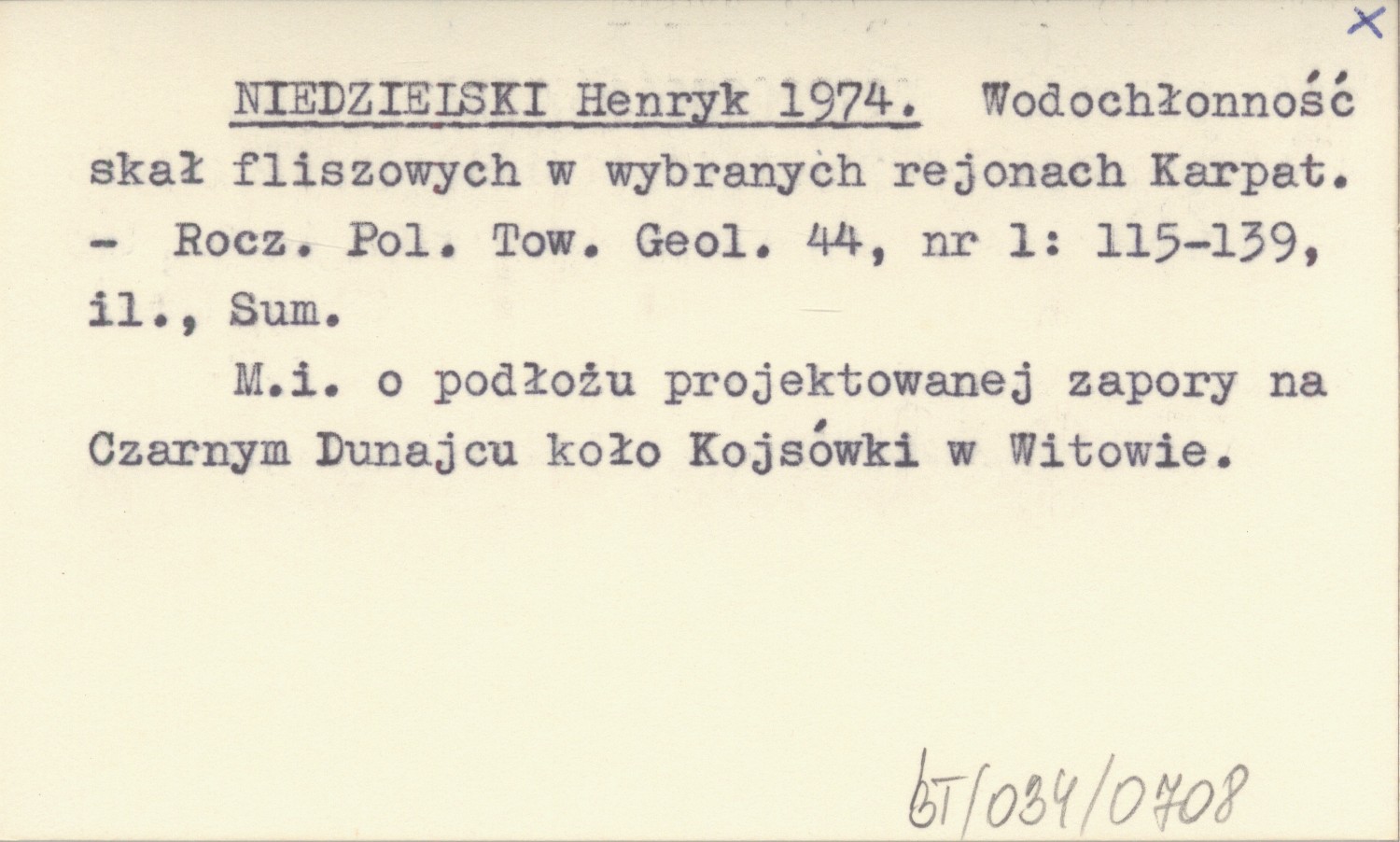 NIEDZIELSKI Henryk 1974 Wodochłonność skał fliszowych w wybranych rejonach Karpat.