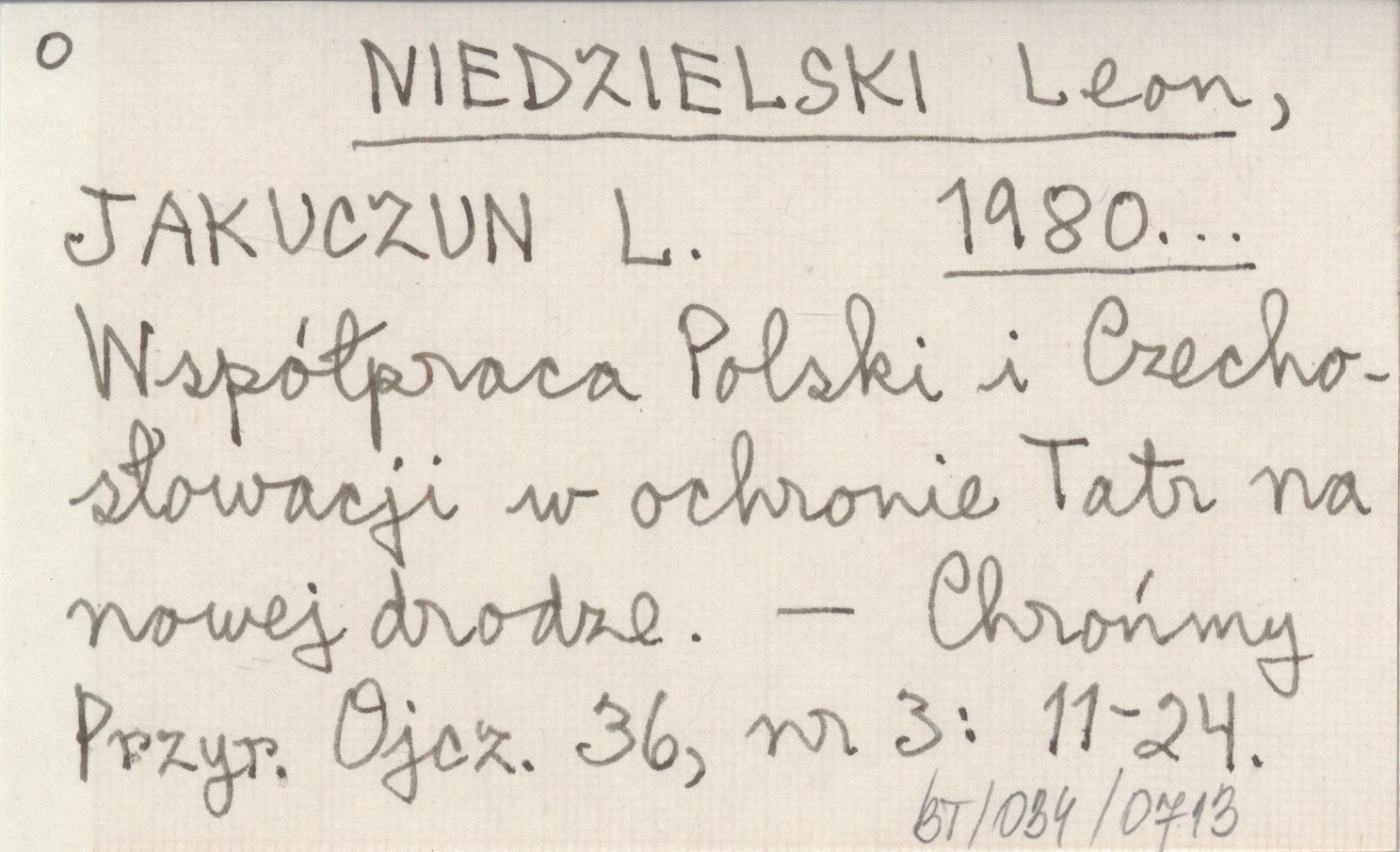 NIEDZIELSKI Leon JAKUCZUN, L. ; 1980... Współpraca Polski i Czechosłowacji w ochronie Tatr na nowej drodze.