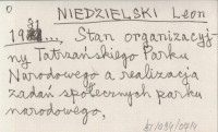 NIEDZIELSKI Leon 1981... Stan organizacyjny Tatrzańskiego Parku Narodowego a realizacja zadań społecznych parku narodowego.