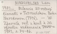 NIEDZIELSKI Leon 1981... Bilancia 25-ročnej činnosti v Tatrzańskom Parku Narodowom (TPN).