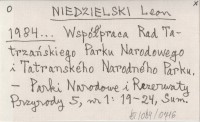 NIEDZIELSKI Leon 1984... Współpraca Rad Tatrzańskiego Parku Narodowego i Tatranského Narodného Parku.