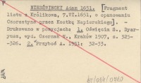 NIED¬WIECKI Adam 1651 [Fragment listu z Królikowa, 7.VI.1651, o opanowaniu Czorsztyna przez Kostkę Napierskiego].
