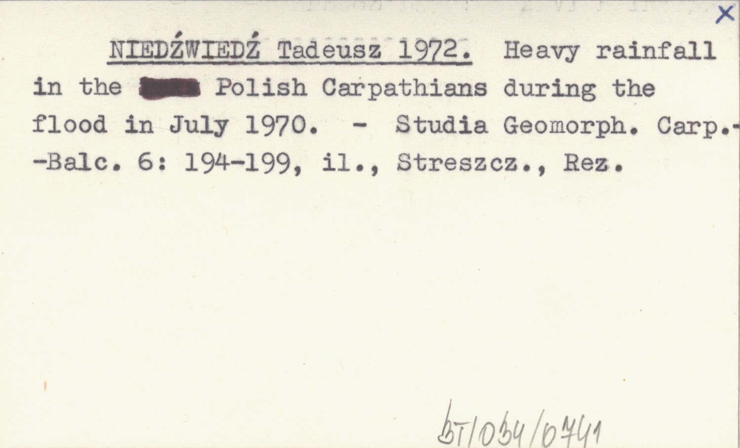 NIED¬WIED¬ Tadeusz 1972 Heavy rainfall in the Polish Carpathians during the flood in July 1970.