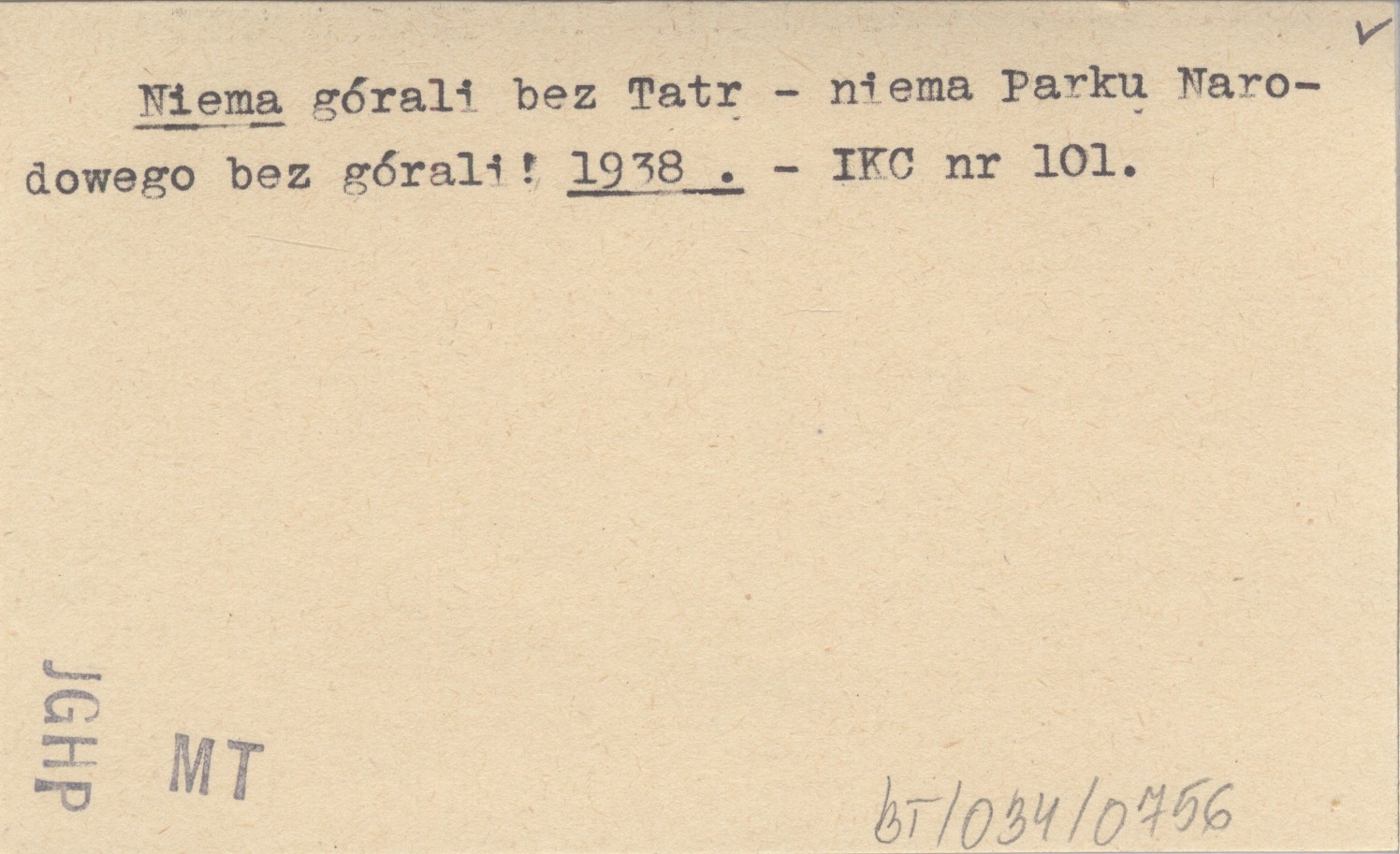 Niema górali bez Tatr - niema Parku Narodowego bez górali! 1938