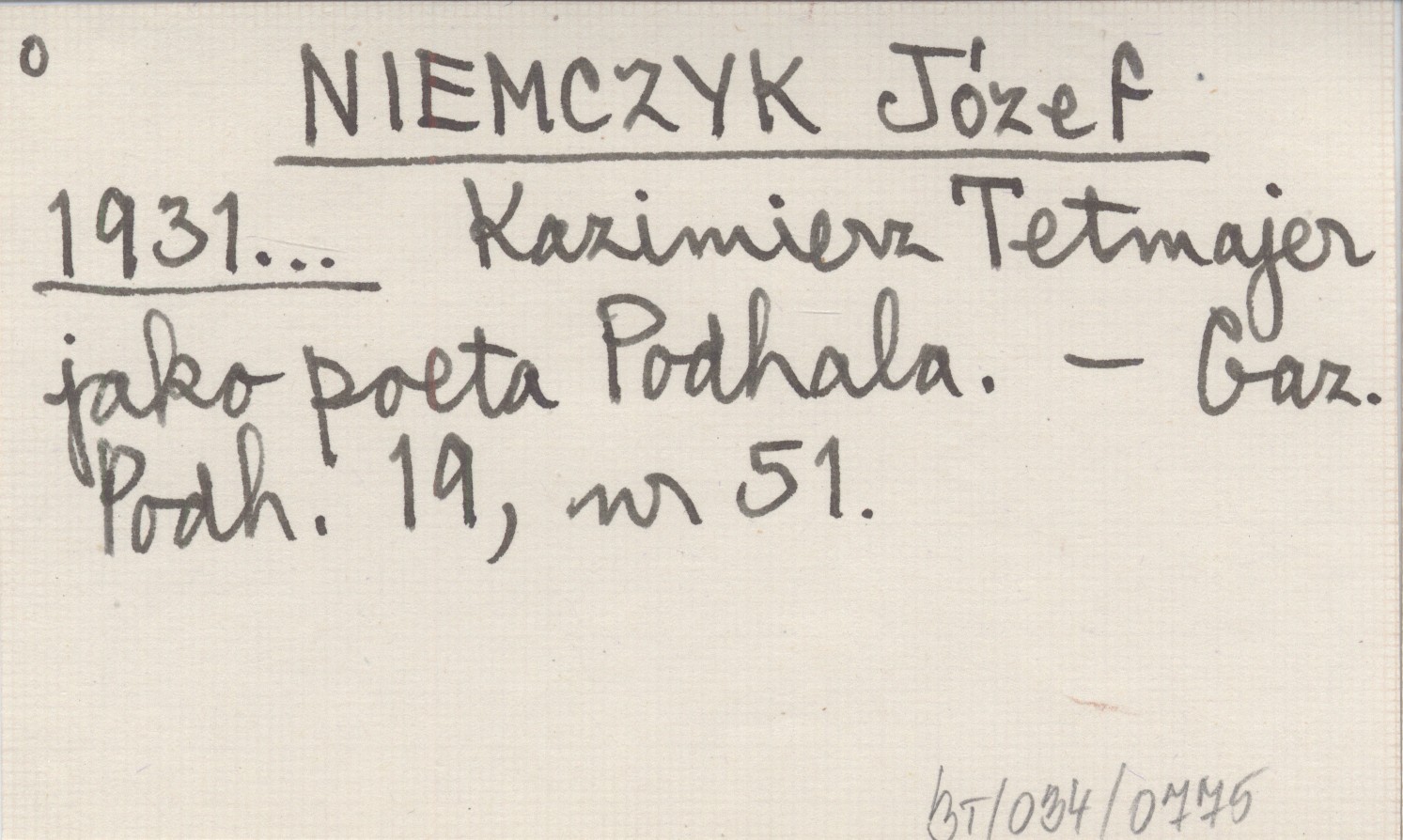 NIEMCZYK Józef 1931... Kazimierz Tetmajer jako poeta Podhala.