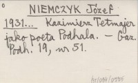 NIEMCZYK Józef 1931... Kazimierz Tetmajer jako poeta Podhala.