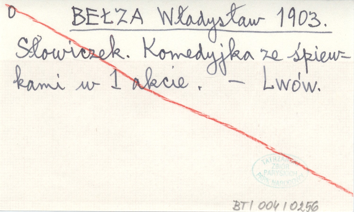 BEŁZA Władysław 1903 Słowiczek. Komedyjka ze śpiewkami w 1 akcie.