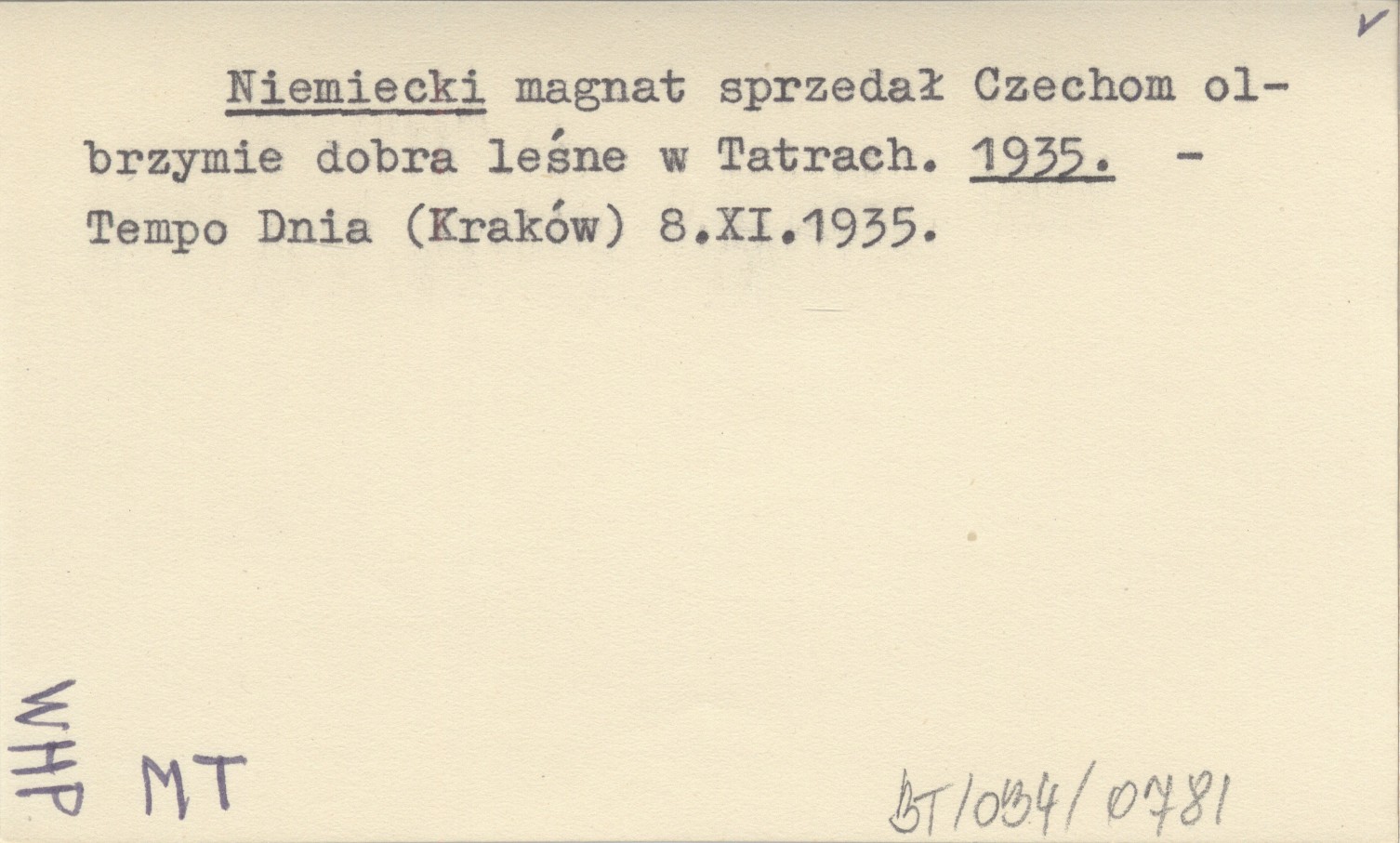 Niemiecki magnat sprzedał Czechom olbrzymie dobra leśne w Tatrach. 1935