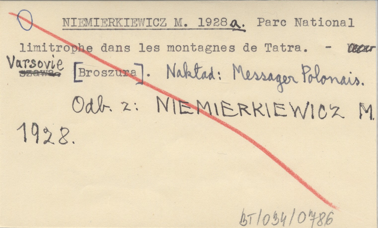[Broszura]. Nakład: Messager Polonais. Odb. z: NIEMIERKIEWICZ M. 1928.