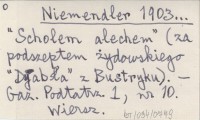 Niemendler 1903... "Scholem alechem" (za podszeptem żydowskiego "Dyabła" z Bustryku).