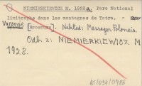 NIEMIERKIEWICZ M. 1928 a Parc National limitrophe dans les montagnes de Tatra.