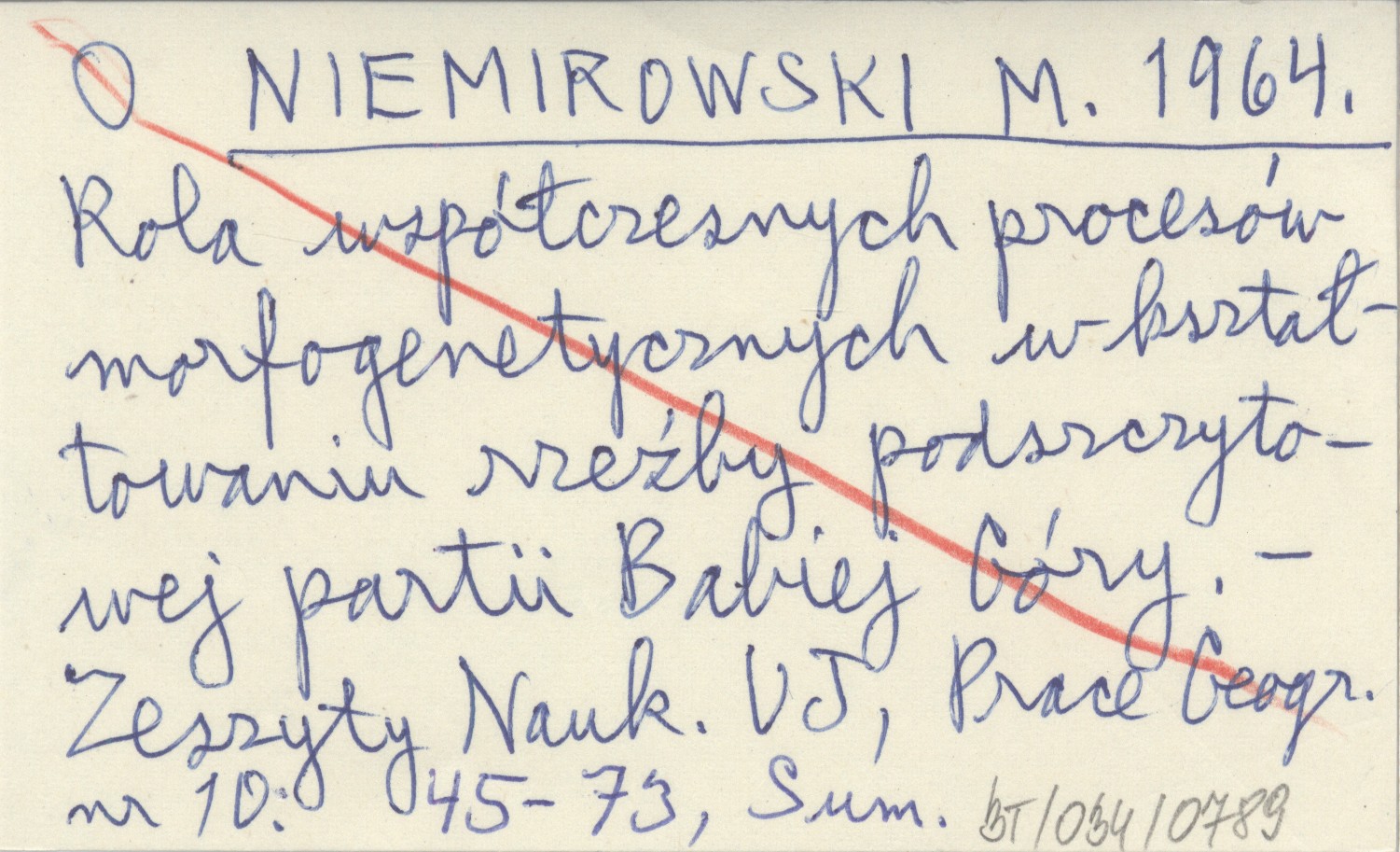 NIEMIROWSKI M. 1964 Rola współczesnych procesów morfogenetycznych w kształtowaniu rzeźby podszczytowej partii Babiej Góry.
