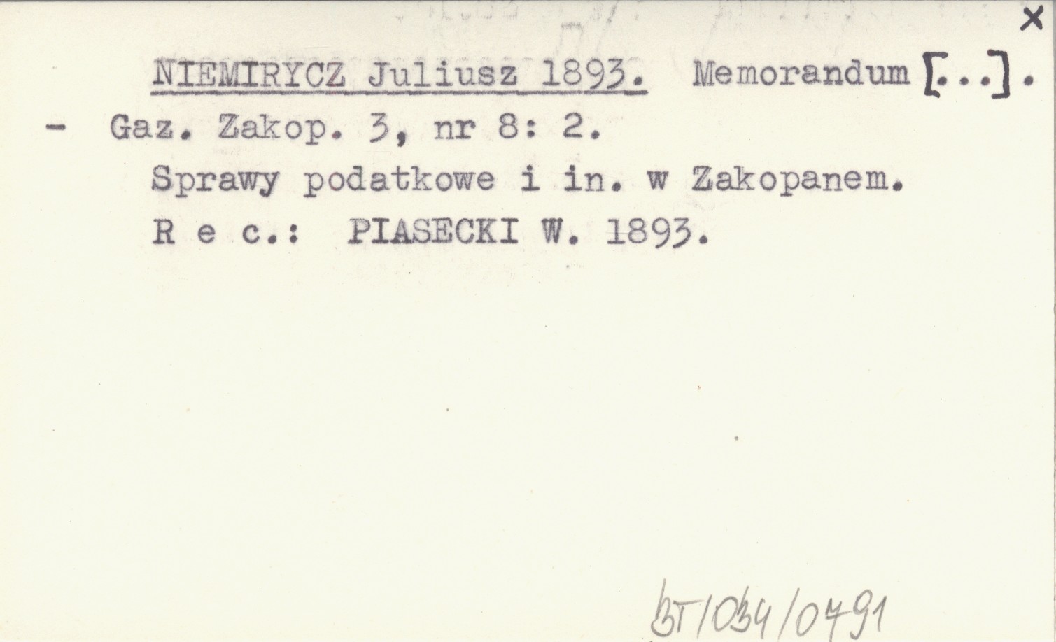 Gazeta Zakopiańska, 3, nr 8: 2. Sprawy podatkowe i in. w Zakopanem. REC: PIASECKI W. 1893