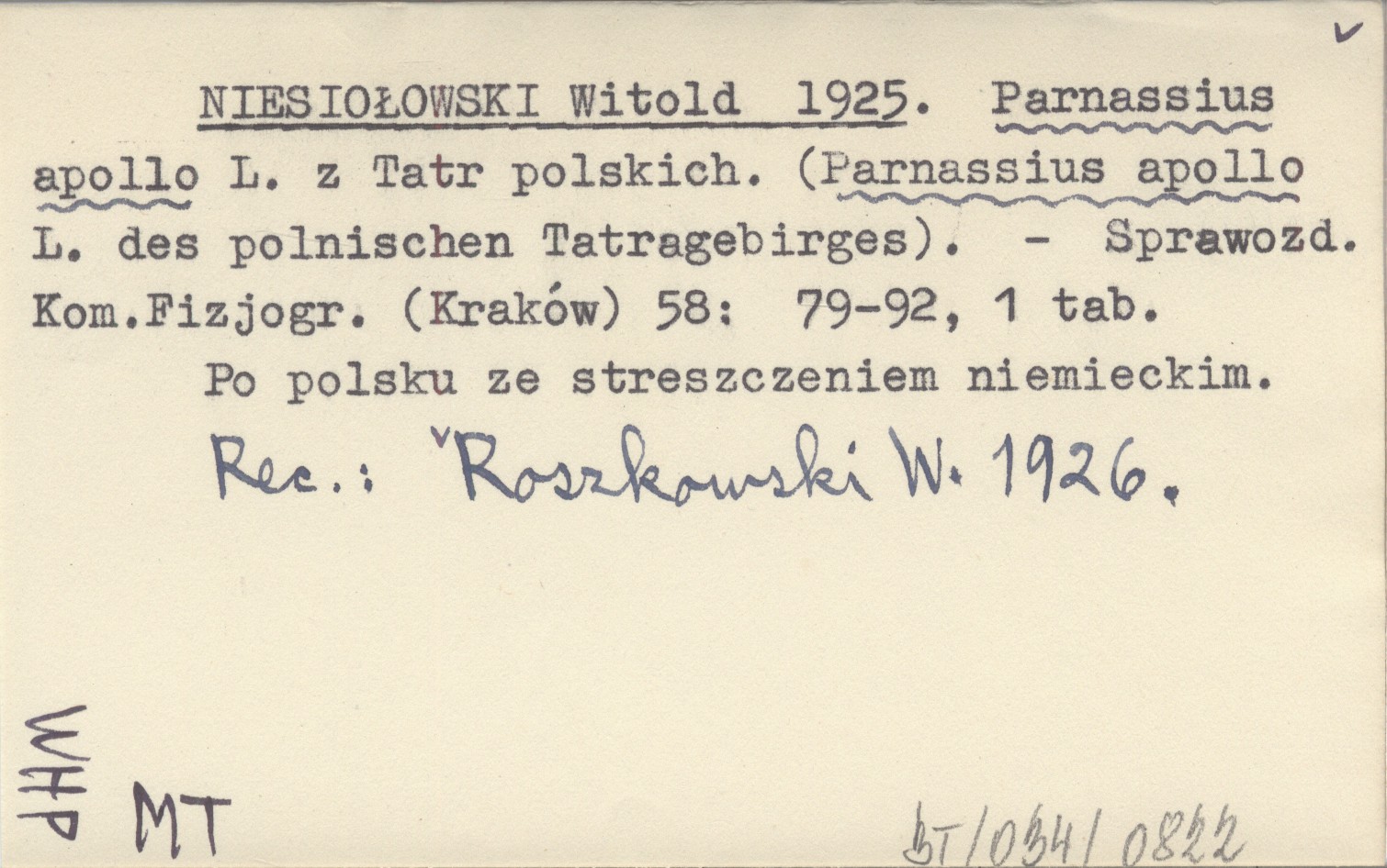 NIESIOŁOWSKI Witold 1925 Parnassius apollo L. z Tatr polskich. (Parnassius apollo L. des polnischen Tatragebirges).