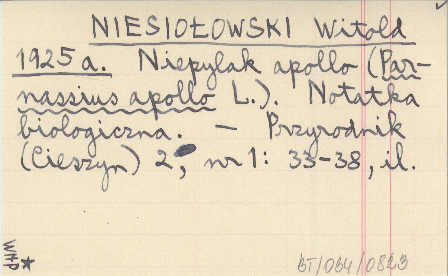 NIESIOŁOWSKI Witold 1925 a Niepylak apollo (Parnassius apollo L.). Notatka biologiczna.