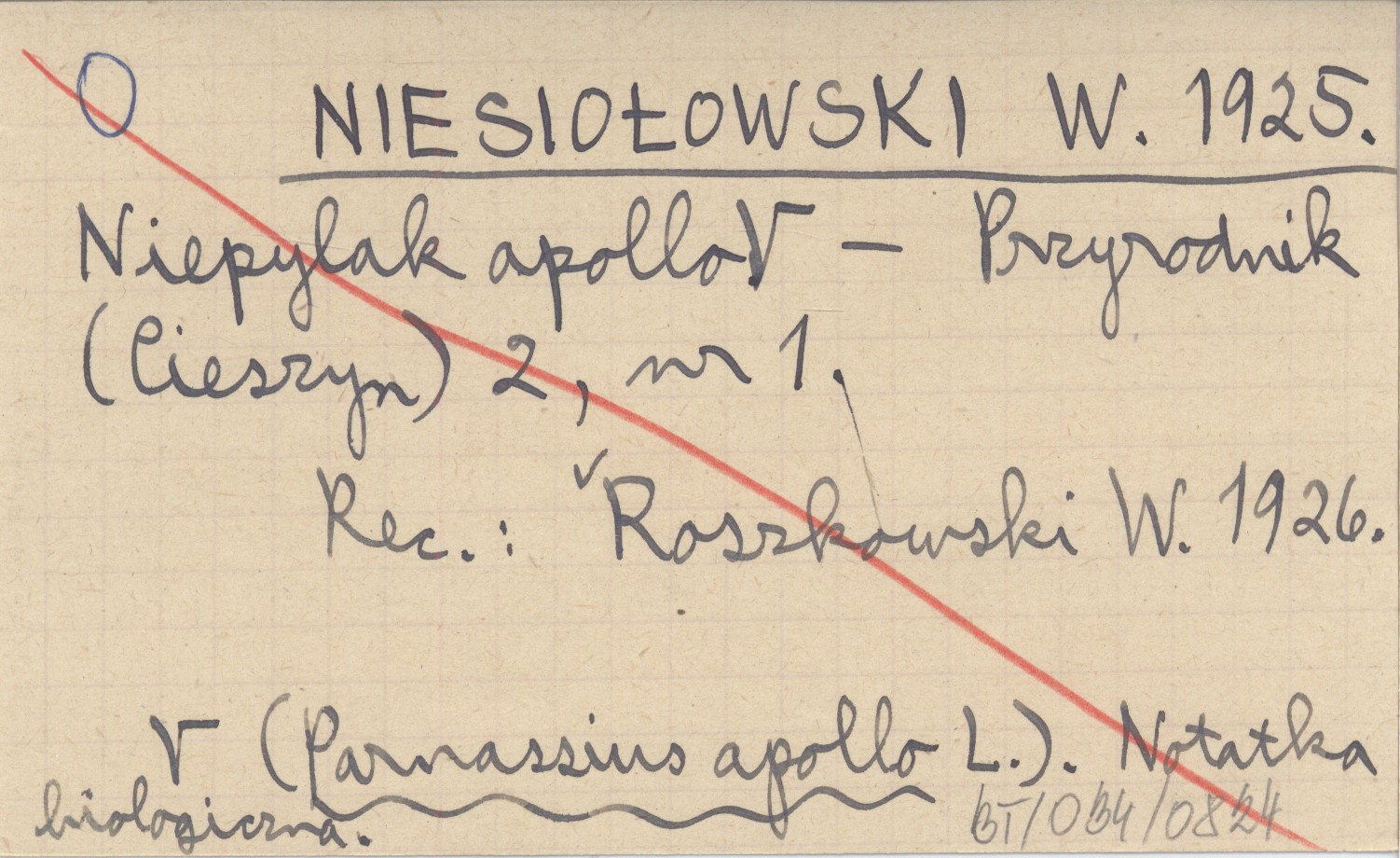 NIESIOŁOWSKI W. 1925 Niepylak apollo (Parnassius apollo L.). Notatka biologiczna.