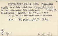 NIESIOŁOWSKI W. 1925 Niepylak apollo (Parnassius apollo L.). Notatka biologiczna.