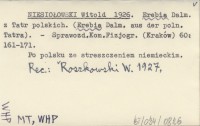 NIESIOŁOWSKI Witold 1926 Erebia Dalm. z Tatr polskich. (Erebia Dalm. aus der poln. Tatra).