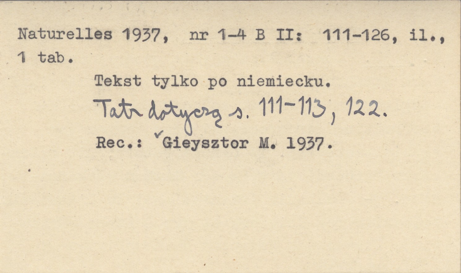 Bulletin International de l'Académie Polonaise des Sciences et des Lettres, Classe des Sciences Mathématiques et Naturelles (Cracovie) , Nr 1-4 B 2: 111-126, il., 1 k. tabl. Tekst tylko po niemiecku. Tatr dotyczą s. 111-113, 122. REC: GIEYSZTOR M. 1937