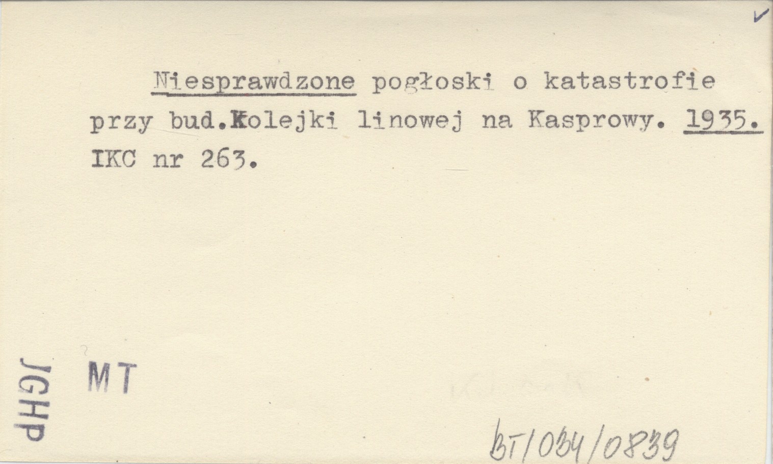 Niesprawdzone pogłoski o katastrofie przy bud.Kolejki linowej na Kasprowy. 1935