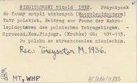 NIESIOŁOWSKI Witold 1932 Przyczynek do fauny motyli większych (Macrolepidoptera) Tatr polskich. Beitrag zur Fauna der Makrolepidopteren des polnischen Tatragebirges.
