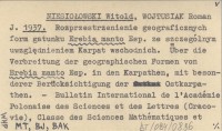 NIESIOŁOWSKI Witold WOJTUSIAK, Roman J. ; 1937 a Rozprzestrzenienie form geograficznych gatunku Erebia manto Esp., ze szczególnym uwzględnieniem Karpat Wschodnich.