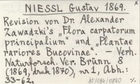 NIESSL Gustav 1869 Revision von Dr. Alexander Zawadzki's "Flora carpatorum principalium" und "Plantae rariores Bucovinae".