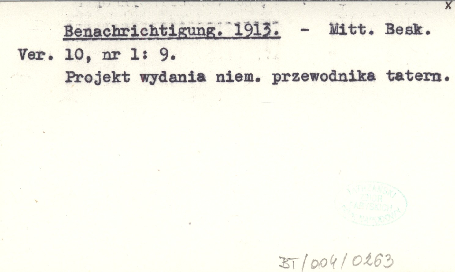 Mitteilungen des Beskidenvereines, 10, nr 1: 9. Projekt wydania niem. przewodnika tatern.