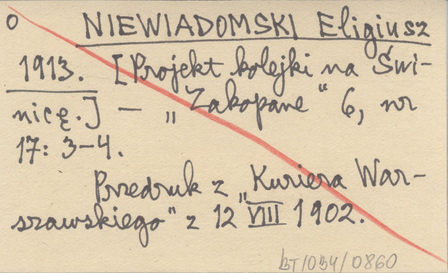 NIEWIADOMSKI Eligiusz 1913 [Projekt kolejki na Świnicę].