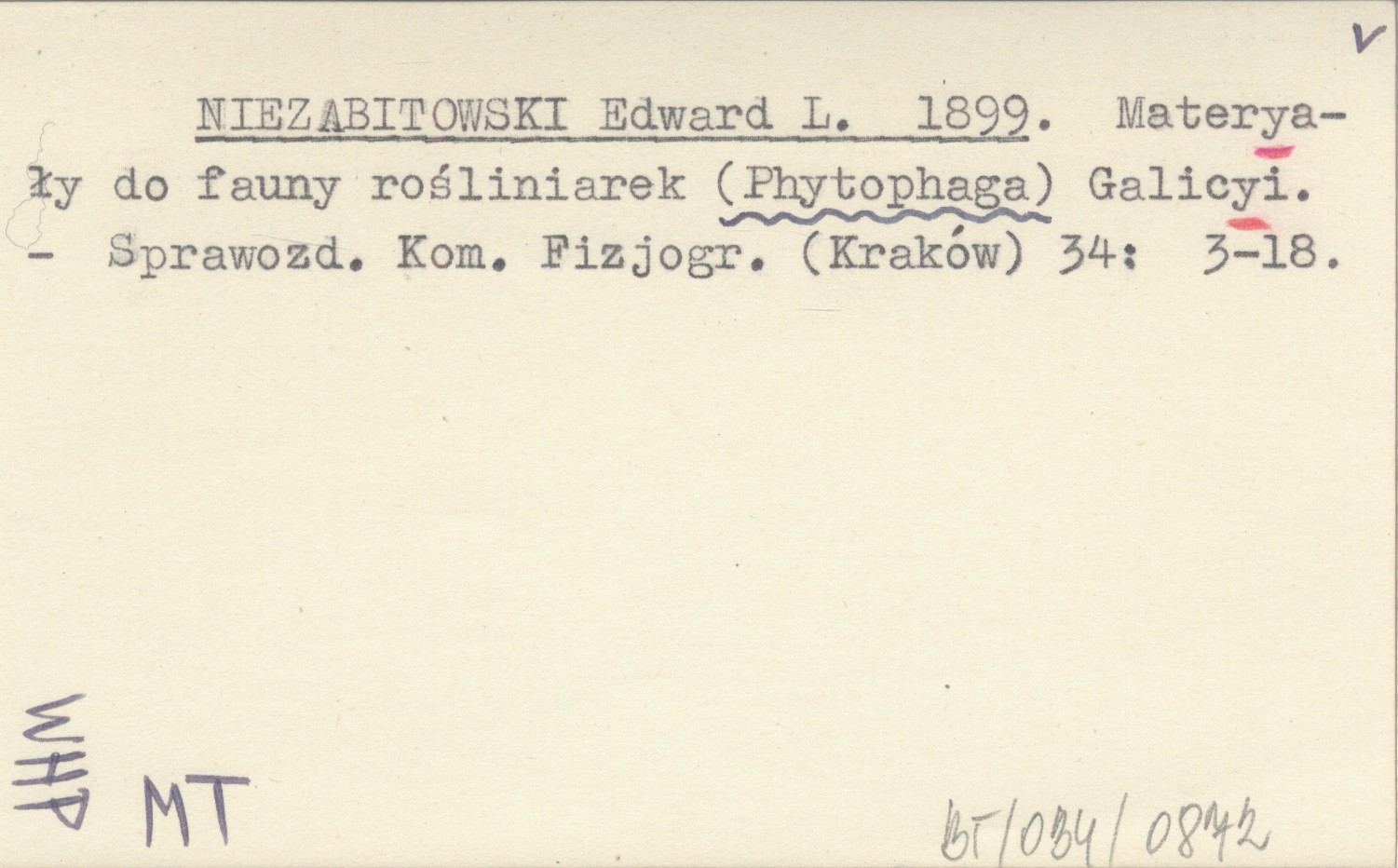 NIEZABITOWSKI Edward L. 1899 Materyały do fauny rośliniarek (Phytophaga) Galicyi.