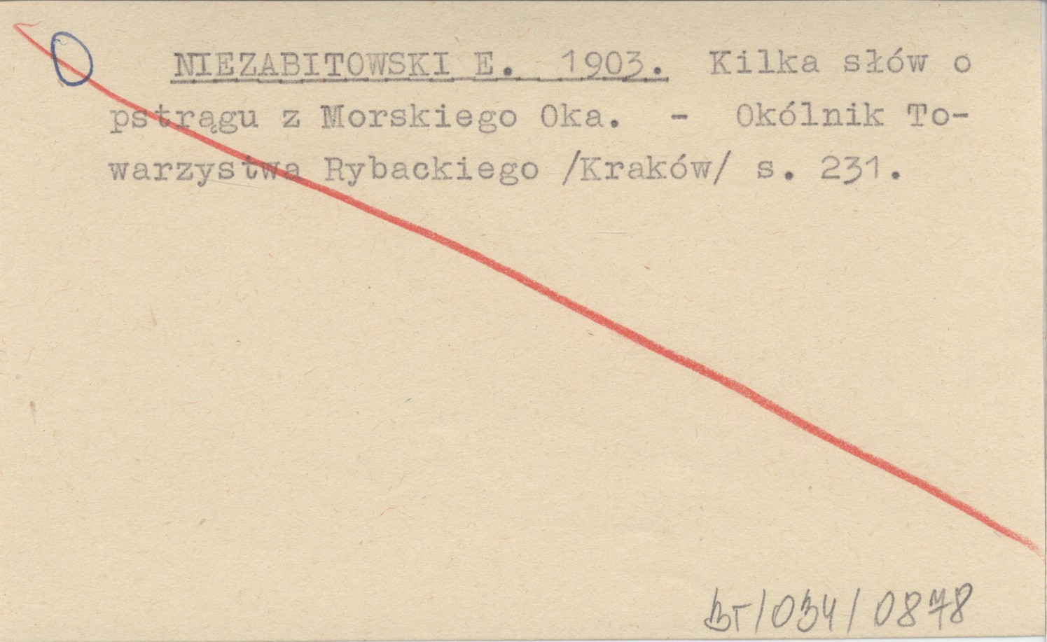 NIEZABITOWSKI E. 1903 Kilka słów o pstrągu z Morskiego Oka.