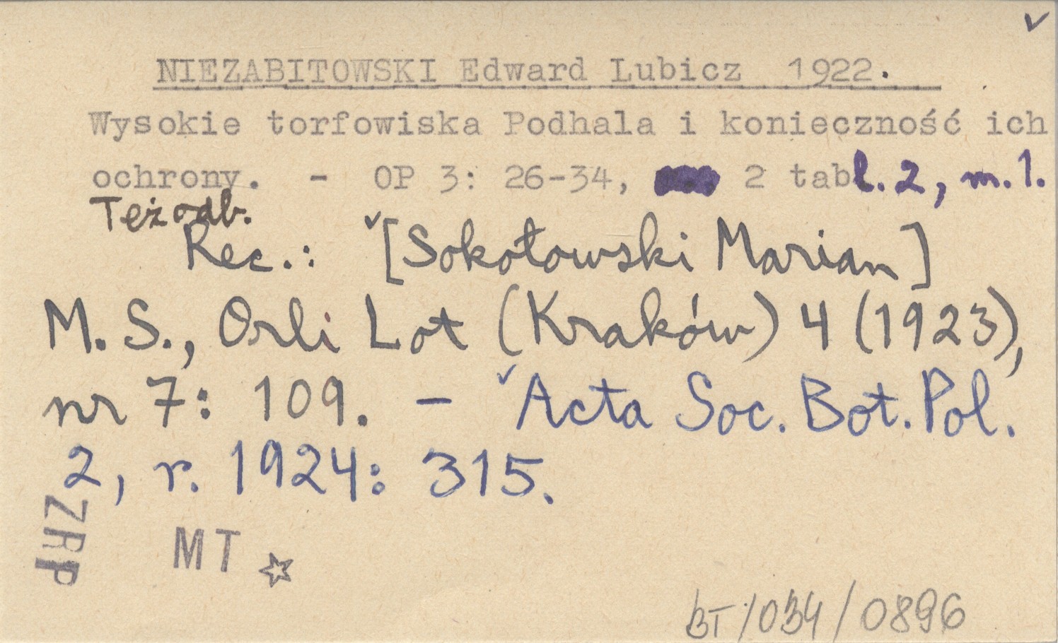 NIEZABITOWSKI Edward Lubicz 1922 Wysokie torfowiska Podhala i konieczność ich ochrony.