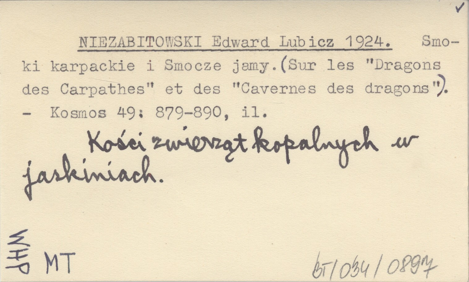 Kosmos, 49: 879-890, il. Kości zwierząt kopalnych w jaskiniach.
