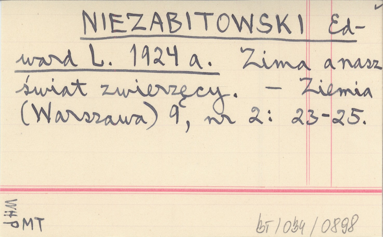 NIEZABITOWSKI Edward L. 1924 a Zima a nasz świat zwierzęcy.