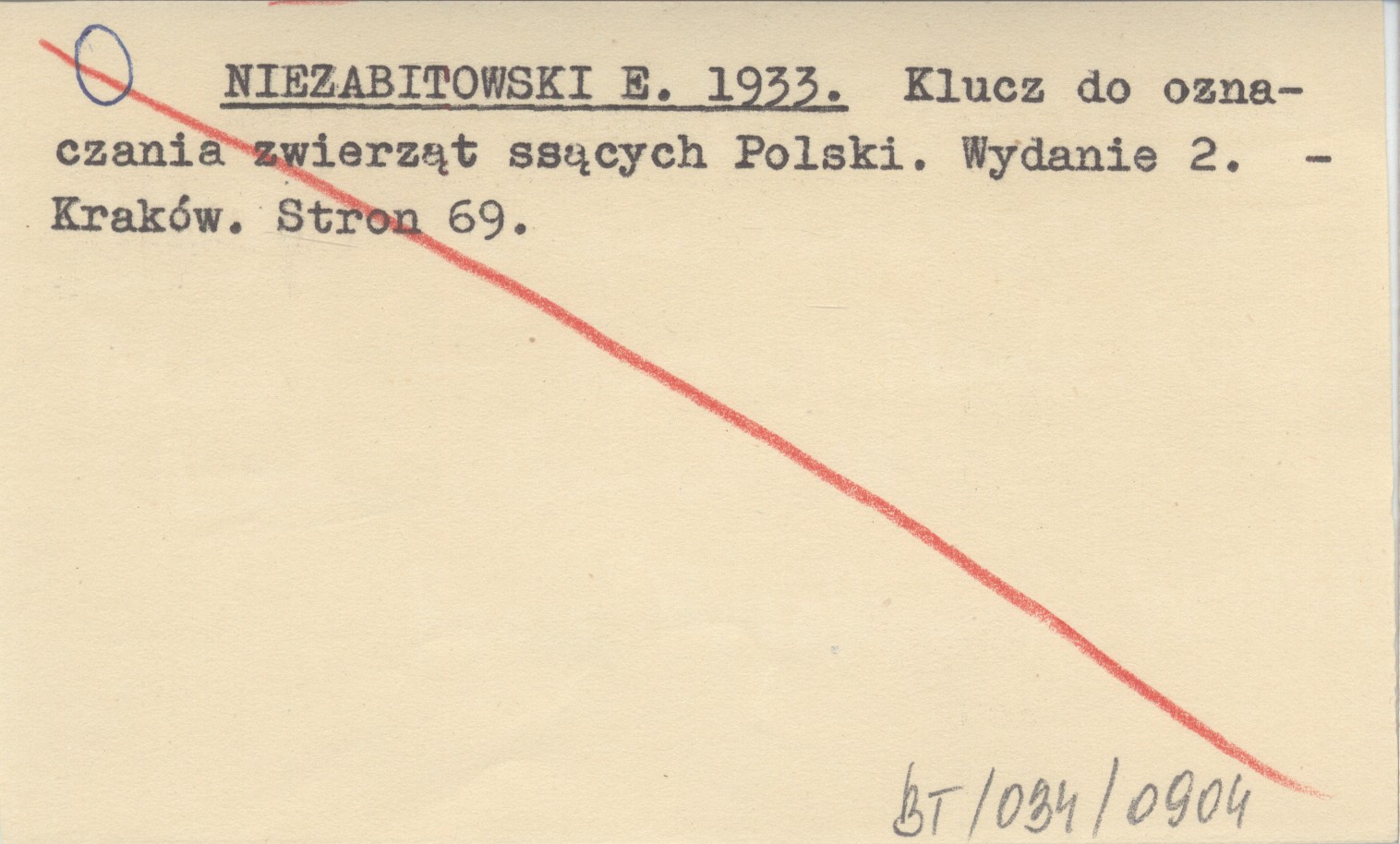 NIEZABITOWSKI E. 1933 Klucz do oznaczania zwierząt ssących Polski.