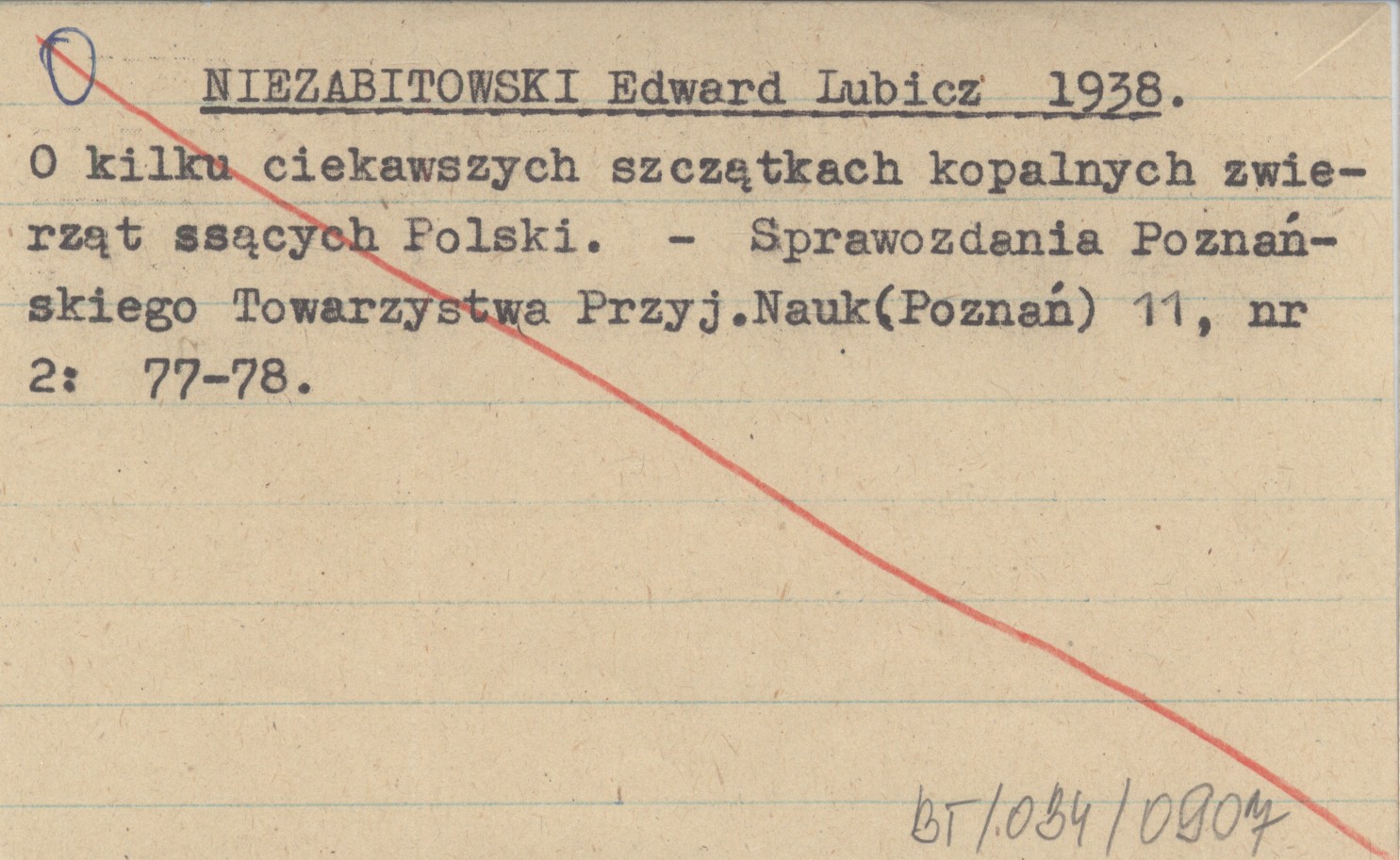 NIEZABITOWSKI Edward Lubicz 1938 O kilku ciekawszych szczątkach kopalnych zwierząt ssących Polski.