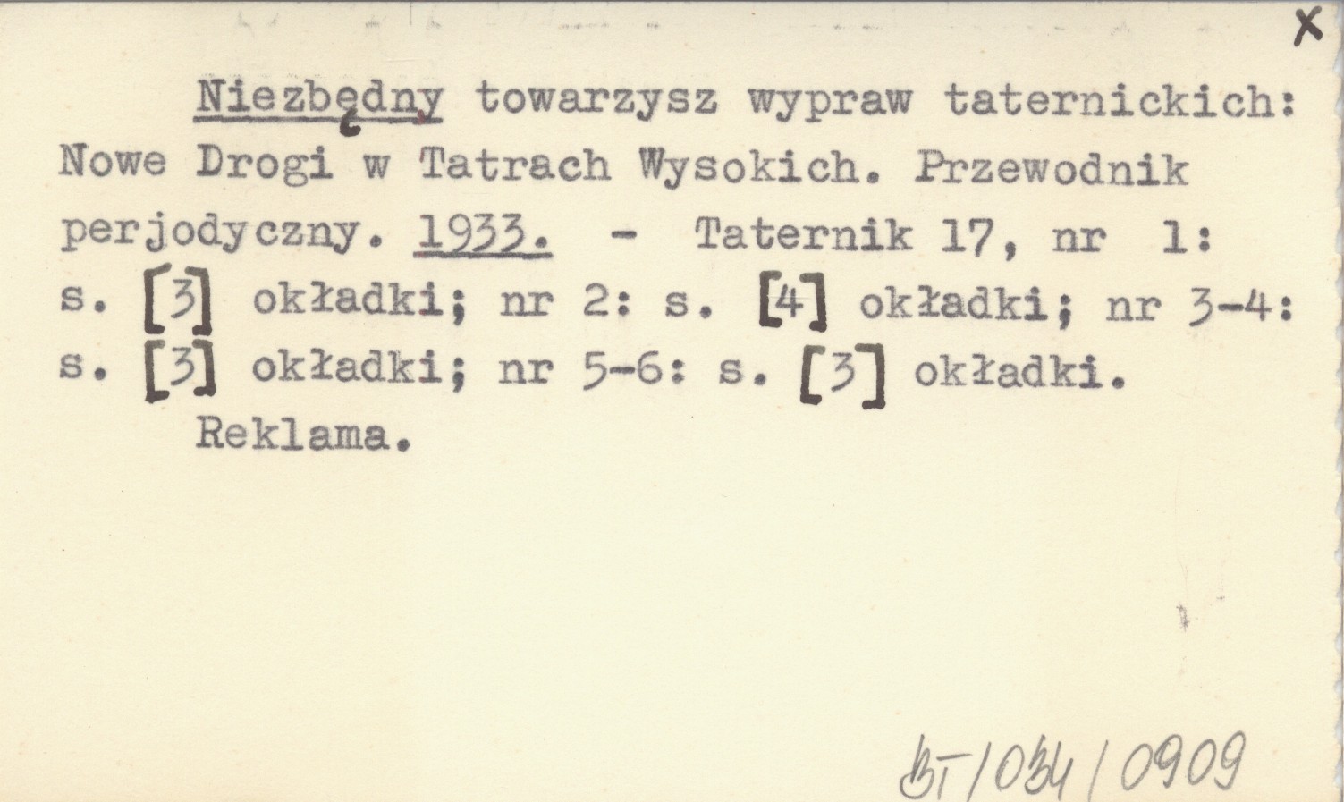 Taternik, 17, nr 1: [3] okł. ; nr 2: [4] okł. ; nr 3-4: [3] okł. ; nr 5-6: [3] okł. Reklama.