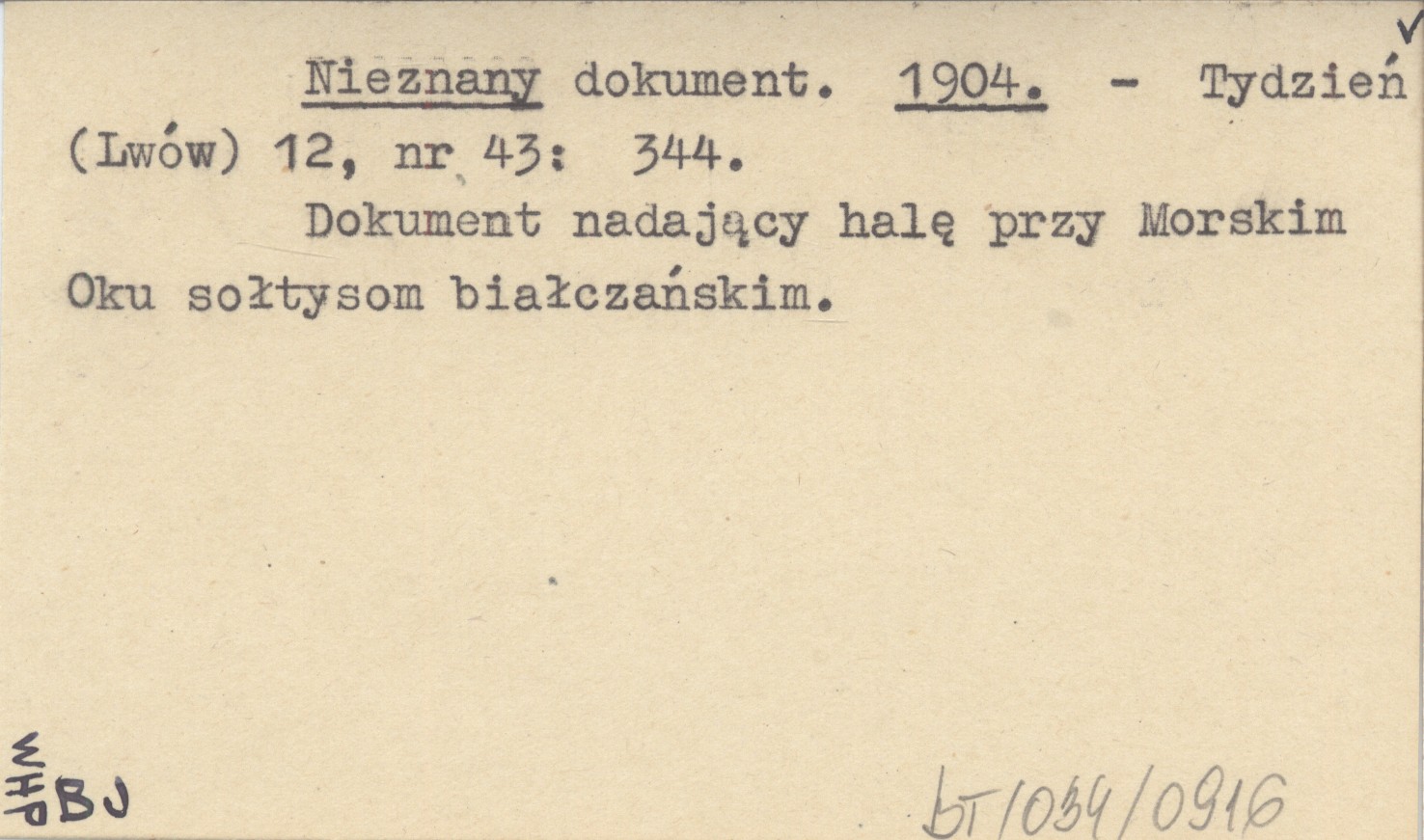 Tydzień (Lwów) , 12, nr 43: 344. Dokument nadający halę przy Morskim Oku sołtysom białczańskim.