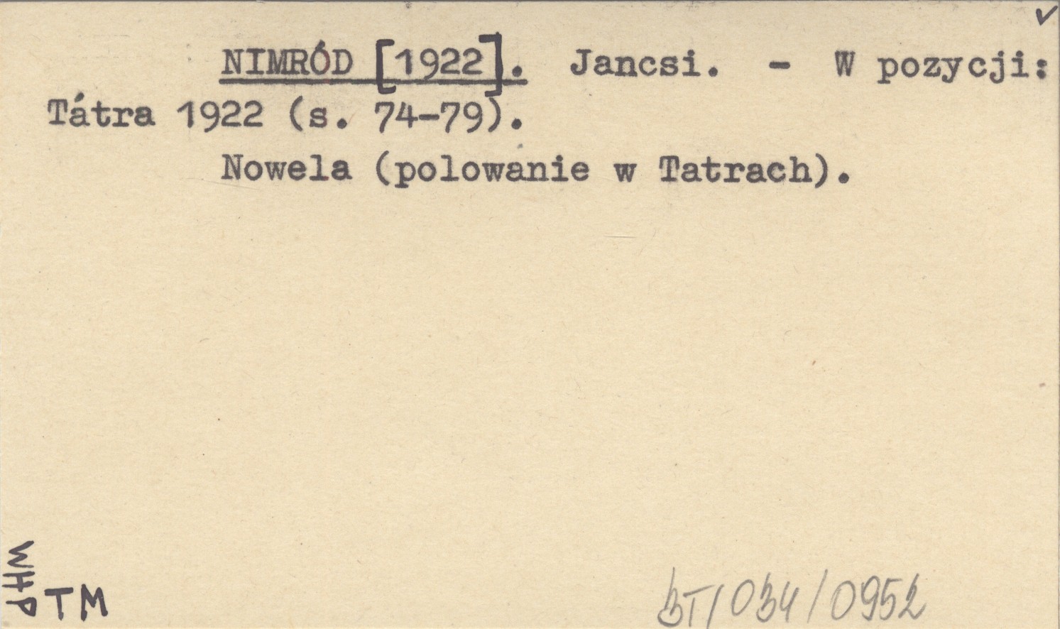 Tátra 1922. , S. 74-79. Nowela (polowanie w Tatrach).
