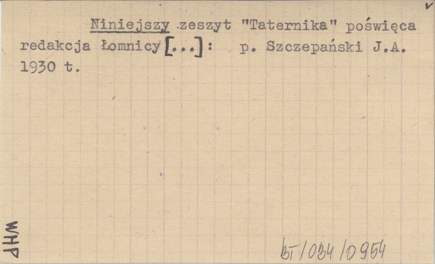 zeszyt "Taternika" poświęca redakcja Łomnicy [...].