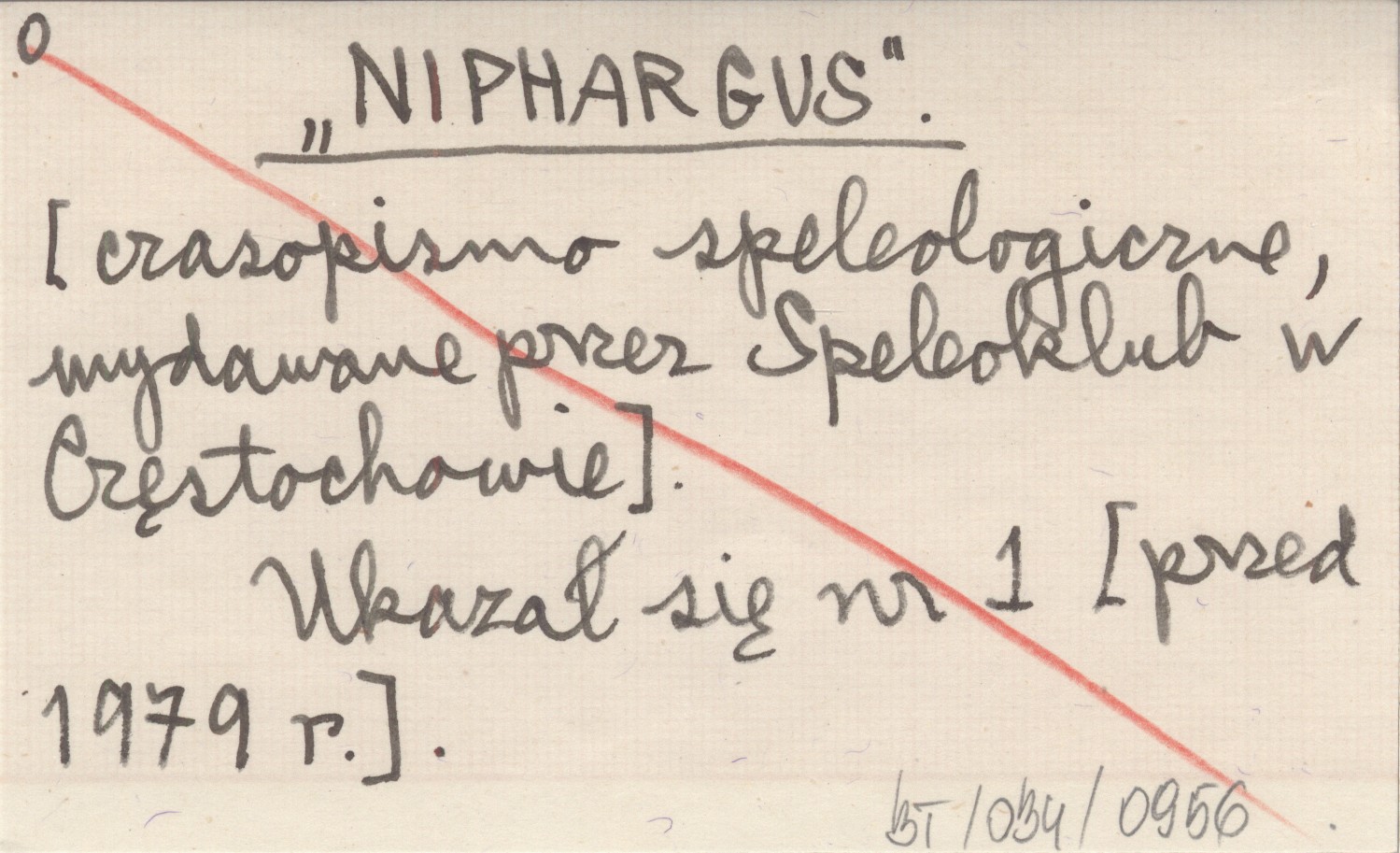 NIPHARGUS Nr 1. Częstochowa [czasopismo speleologiczne, wydawane przez Speleoklub w Częstochowie]. Ukazał się nr 1 [przed 1979 r.].