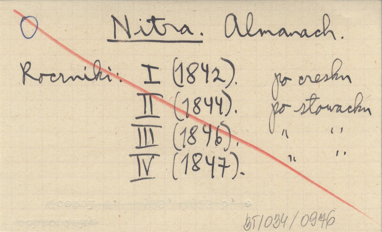 , R. 1 (1842, po czesku), 2 (1844, po słowacku), 3 (1846, po słowacku), 4 (1847, po słowacku).