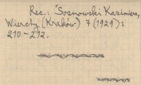 REC: SOSNOWSKI Kazimierz, Wierchy (Kraków) 7 (1929): 210-212.