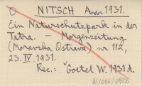 NITSCH Andor 1931 Ein Naturschutzpark in der Tatra.