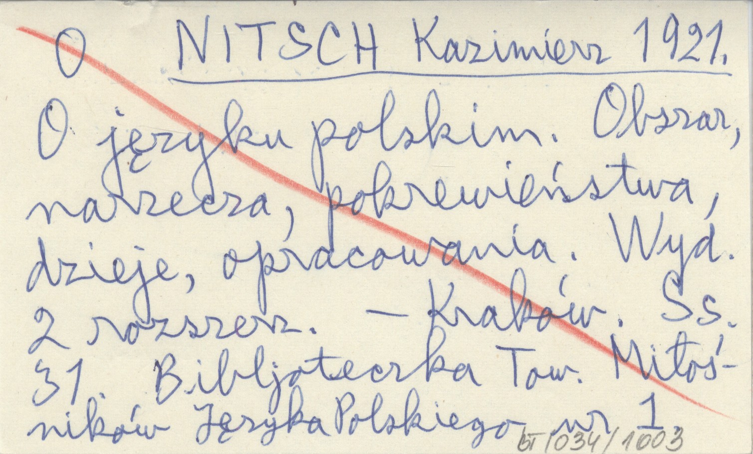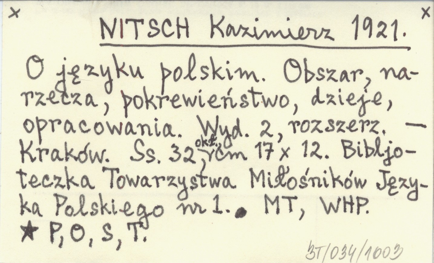 WYD: 2 (roz.) Kraków (Bibljoteczka Towarzystwa Miłośników Języka Polskiego, nr 1) , 32 s., okł., 17x12 cm.