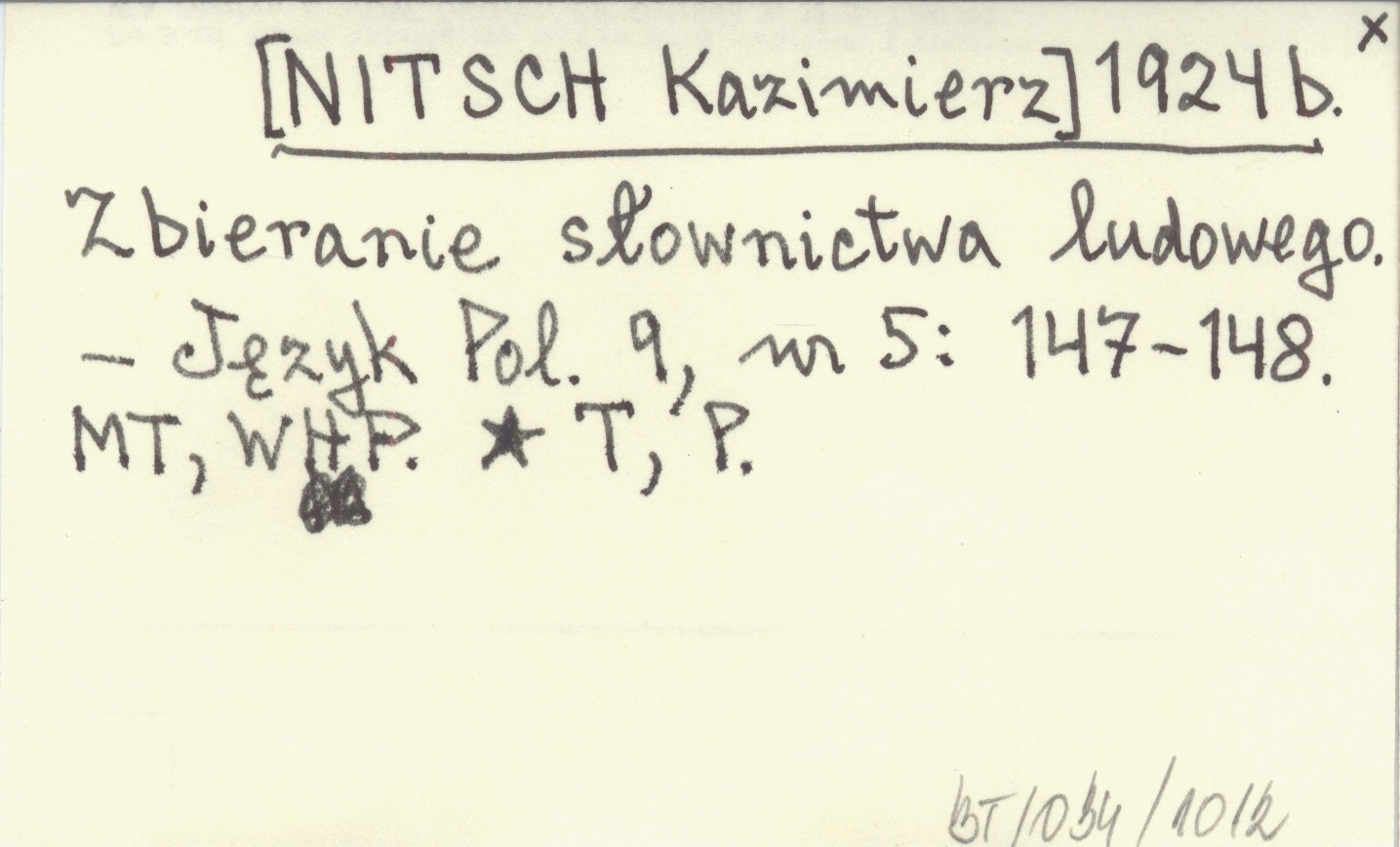 [NITSCH Kazimierz] 1924 b Zbieranie słownictwa ludowego.