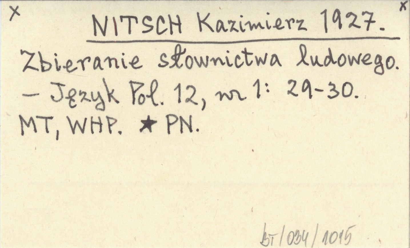 NITSCH Kazimierz 1927 Zbieranie słownictwa ludowego.