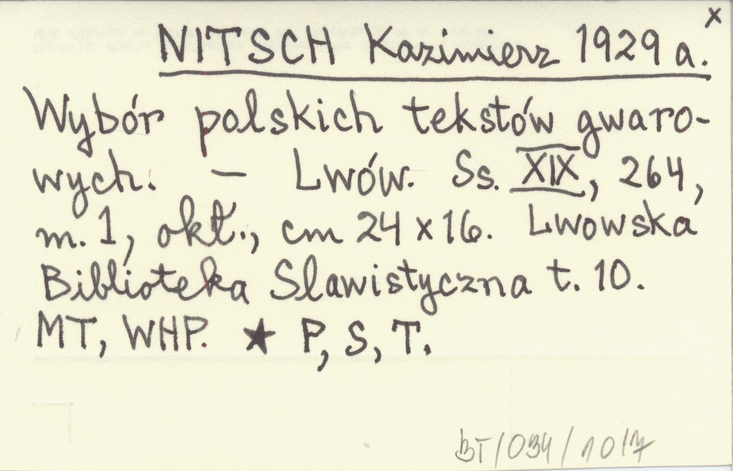 NITSCH Kazimierz 1929 a Wybór polskich tekstów gwarowych.