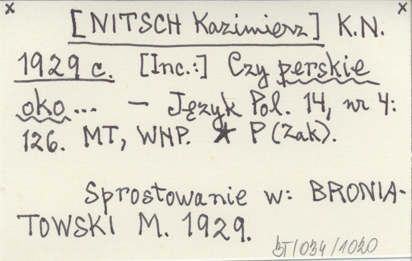 K. N. [NITSCH Kazimierz] 1929 c Czy perskie oko ...